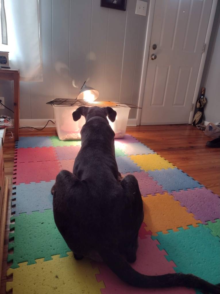 A few weeks ago, we got four baby chickens, two golden comets and two cinnamon queens. I know. You might be disappointed from the title, so feel free to skip this one, then. I had zero expectations. Well, that’s not exactly true. I had zero positive expectations. I had plenty of negative ones. They’d be messy, dumb, creepy, weird, etc. How could one love a chicken? So, while they’re staying inside with us (yes, with our Jabba-like cat and Great Dane), how gross would this be? How awful!